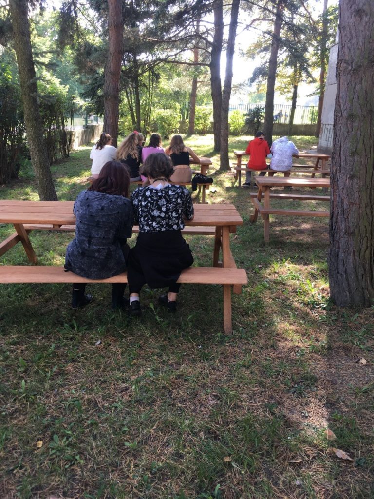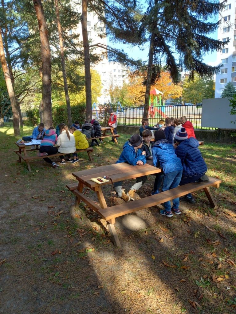 Ďalšia nevyužitá časť areálu našej školy sa zmenila na záhradnú eko-učebňu. Dokonca vznikli dve. Jedna pri telocvičniach pod vysokými ihličnatými stromami a druhá pri lanovej dráhe. Podarilo sa nám to vďaka podpore Mestskej časti Dúbravka a Nadácie Volkswagen. Vyučovanie, tvorivé dielne a aktivity v rámci školského klubu, či krúžky, môžu v peknom počasí prebiehať vonku. Robiť pokusy, pripravovať projekty, realizovať vzdelávacie aktivity zamerané na environmentálnu výchovu, separovanie odpadu, to všetko sa dá aj mimo tried či školských učební. Eko- učebne už využili deti na vyučovanie počas krajších jesenných dní.