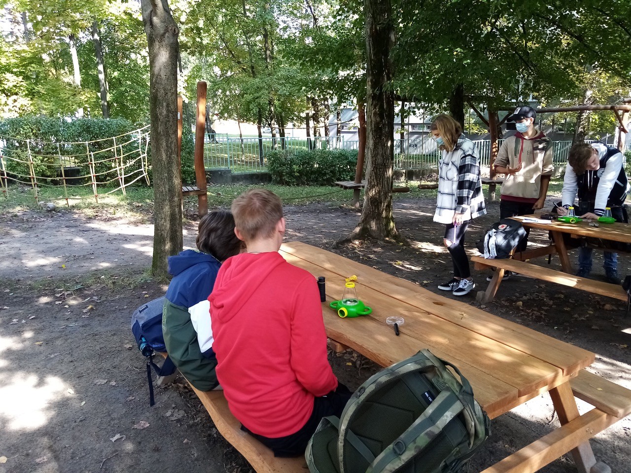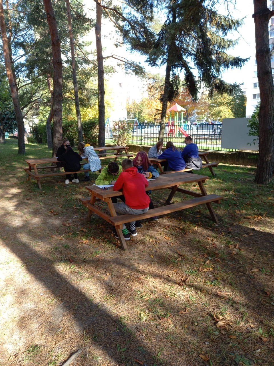 Ďalšia nevyužitá časť areálu našej školy sa zmenila na záhradnú eko-učebňu. Dokonca vznikli dve. Jedna pri telocvičniach pod vysokými ihličnatými stromami a druhá pri lanovej dráhe. Podarilo sa nám to vďaka podpore Mestskej časti Dúbravka a Nadácie Volkswagen. Vyučovanie, tvorivé dielne a aktivity v rámci školského klubu, či krúžky, môžu v peknom počasí prebiehať vonku. Robiť pokusy, pripravovať projekty, realizovať vzdelávacie aktivity zamerané na environmentálnu výchovu, separovanie odpadu, to všetko sa dá aj mimo tried či školských učební. Eko- učebne už využili deti na vyučovanie počas krajších jesenných dní.