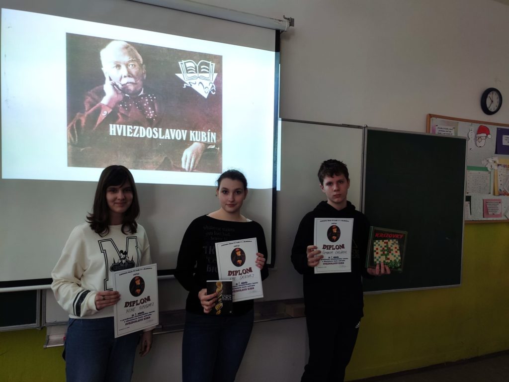 Čestné uznanie: Šimon Pinke (2.B), Juraj Strempek (2.D), Kristína Švingálová (4.B)
